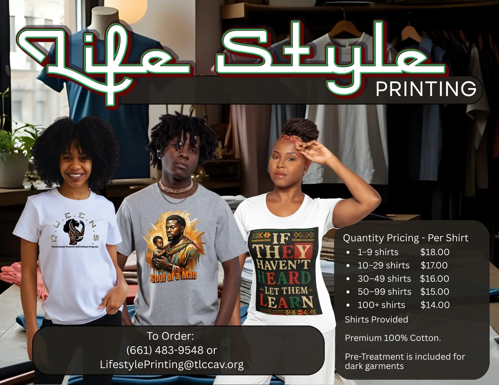 Our custom printing services start here! The prices listed are for printing only, using your own shirts.